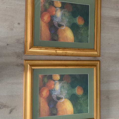 Bredde 63 cm - Højde 73 cm, To ens billeder i super flotte guldramme. Kom med et seriøst bud og vi har en handel :-)
