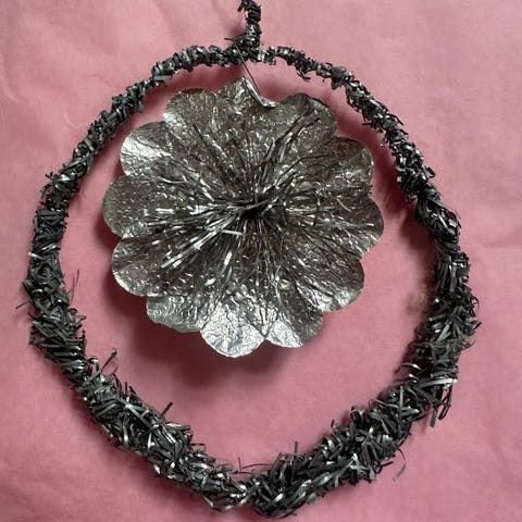 Smuk antik folie blomst på stjerne af blytinsel. Dia ca. 9 cm
