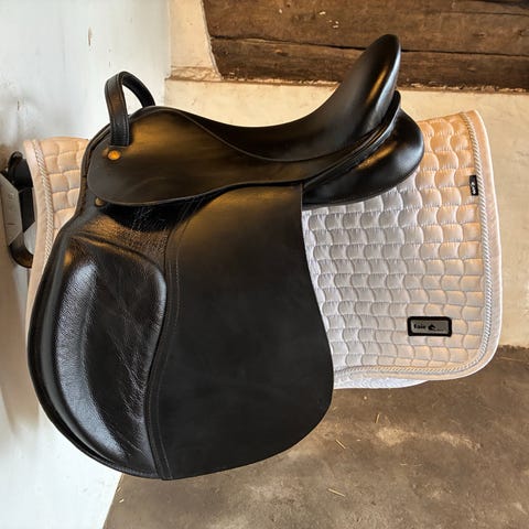Terapisadel 80*80 med øjer til stigebøjler. I lam. Ikke brugt meget.