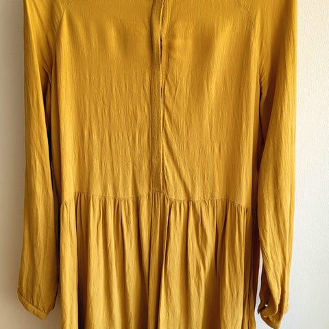 Mørk blå vente-/gravidkjole, som er dejlig rummelig, varm og luftig til den gravide mave, og kan knappes ned til efterfølgende amning.