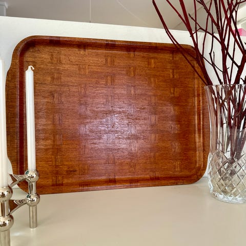 Træbakke med håndtag i mørkt træ