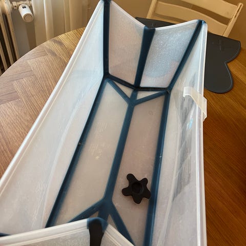 Rigtig fint badekar fra Stokke med babyindsats og badetermometer