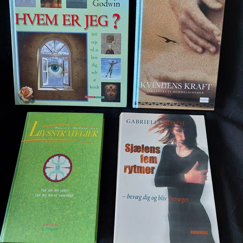 Diverse bøger om personlig udvikling og spiritualitet.