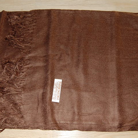 Tørklæde (Pashmina). Nu må man ikke kalde det et pashmina uden det er lavet i Nepal, derfor en parentes omkring, men ingredienserne er de samme 60% kashmir uld og 40% silke. Tørklædet er i en lidt lettere kvalitet. Størrelsen er cirka 180 cm x 60 cm ekskl. frynser. blusen medfølger ikke.