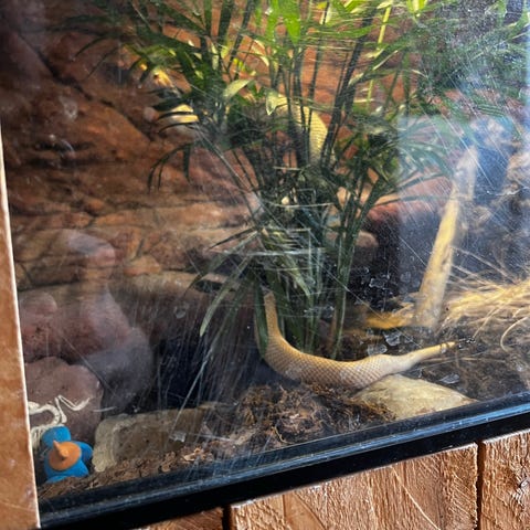 Mushu flytter hjemmefra med hele sit terrarie, alt hvad han har af sten, hule og klatre ting, samt lamper. Han får også en madpakke med bestående af orme og Dubia kakerlakker så han klare sig den første tid.