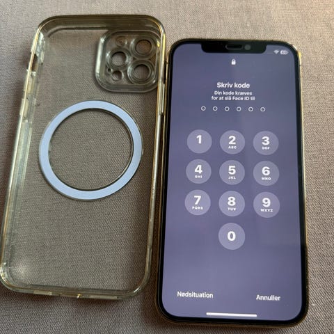 Apple iPhone 12 Pro smartphone med 256 GB lagerplads i farven Gold. Enheden har en 6,1-tommer Super Retina XDR-skærm og et tredobbelt kamera system. Telefonen leveres med original emballage og opladerkabel. Der medfølger et beskyttende cover med tørrede blomster.