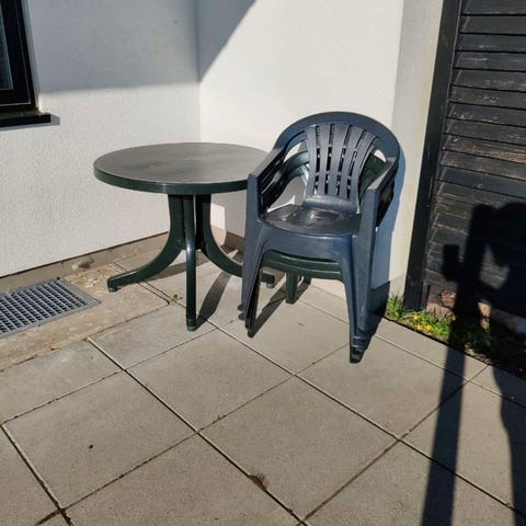 8 stk. have stole der kan stå ude hele året rundt og stables så de ikke fylder så meget og er bløde at sidde i uden pude.