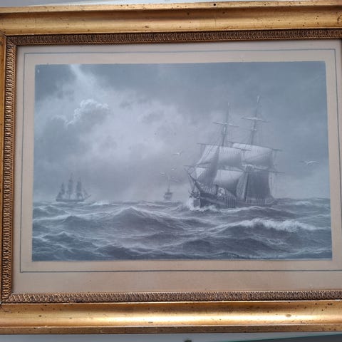 Illustreret kunsttryk 30x40 i sølvramme med mål ca 41,5 x 50,5. Jeg ved ikke hvem illustrator/kunstner er.
