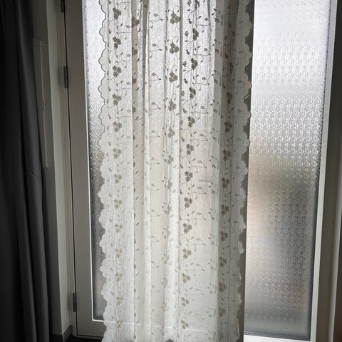 Flotte lange kraftige hvide gardiner med fin mønstret struktur