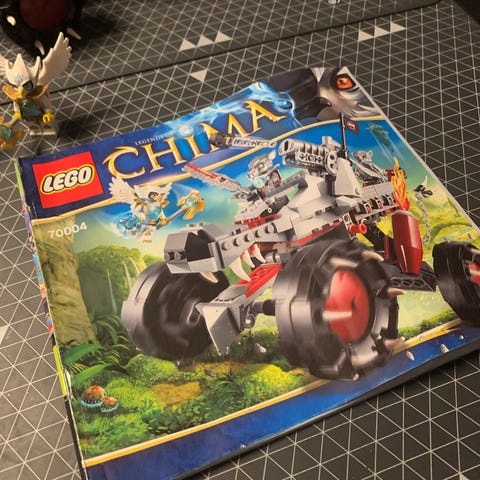 LEGO Legends of Chima 70001 Battle Vehicle set including two instruction booklets. The set features a battle vehicle with detailed design and two minifigures equipped with weapons. Suitable for construction and imaginative play.