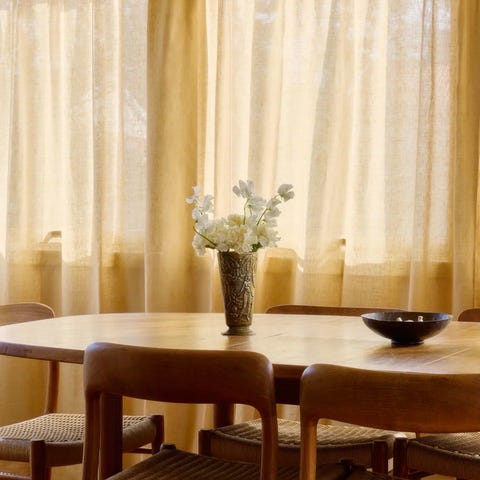 Helt ny boucle gardin fra Gotain i fargen sand