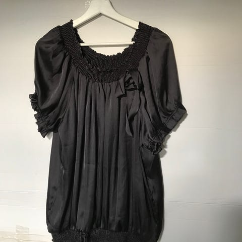 Bluse med broderede blomster på organza lignende stof. Smuk til både mørke og lyse underdele. Vist med forskellige toppe under