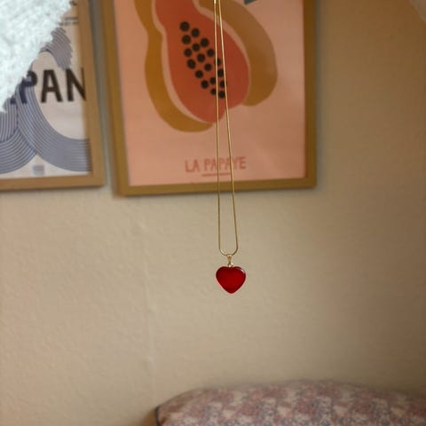 Den turkise er fra Dyrberg Kern og 45 cm lang og tung