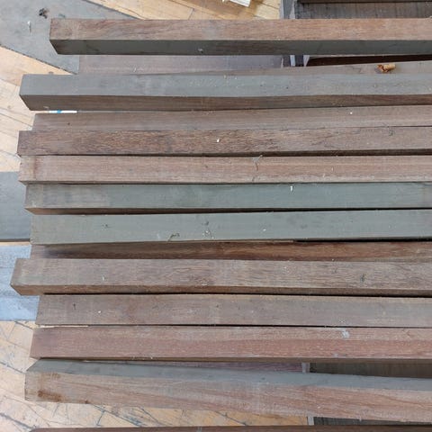 Azobe lister 35x40mm høvlet. Listerne er krumme. Fås i to længder, som vælges under varianter. Sælges i hele længder. Mål eksempel: 35x40x4000mm.
