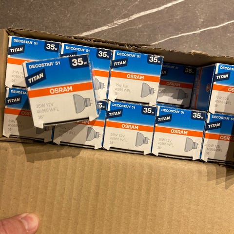 De 10 fra Osram er uåbnet og de 6 fra Tungsram er halvt åbnet. Prisen er for alle 16 stk.