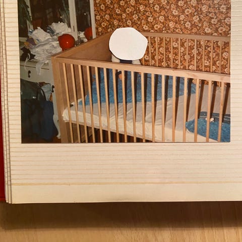 Ikke afbilledet: Træstykke medfølger der kan erstatte den ene sides tremmer, så sengen kan bruges af større børn.