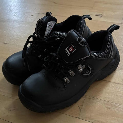 Ubrugte Brynje sikkerhedssko med tilhørende stødabsorberende Sika indlægssåler, nypris 1500-1600 kr.