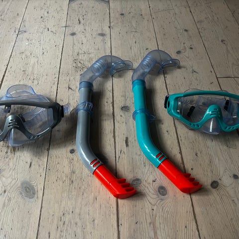 Snorkelmaske med snorkel og opbevaringspose - turkis, størrelse L/XL