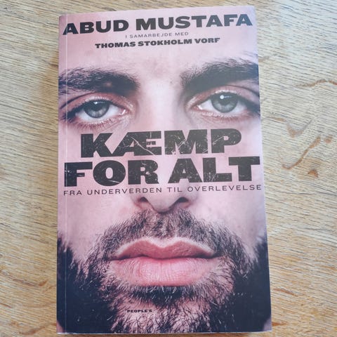 Abud Mustafa Kæmp For Alt Bog. Bog med fokus på overlevelse og livet i underverdenen. Indeholder personlige fortællinger og beskrivelser af udfordringer og erfaringer. Tekst på dansk.
