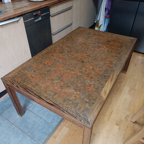 Rigtig velholdt bord, massivt, sæbebehandlet, med kryds som ben, se billede