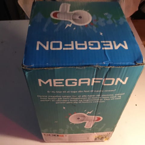 Megafon sælges, virker som den skal. Med genopladeligt batteri. Ny pris: 599,-