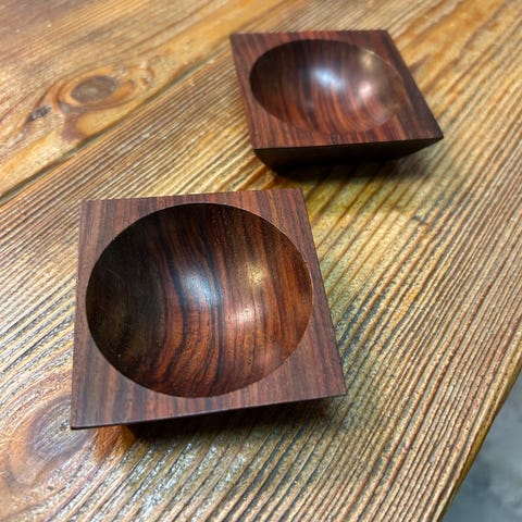 Flot stel i palisander / patineret skammel. Stellet kunne være flot på en palisander kommode o.l.