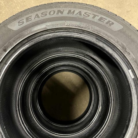 Helårsdæk, kan bruges hele året, dog ikke i hårdt vintervejr. Har selv brugt dem som vinterhjul een sæson. Så de er ret nye. Ny pris 7500 kroner