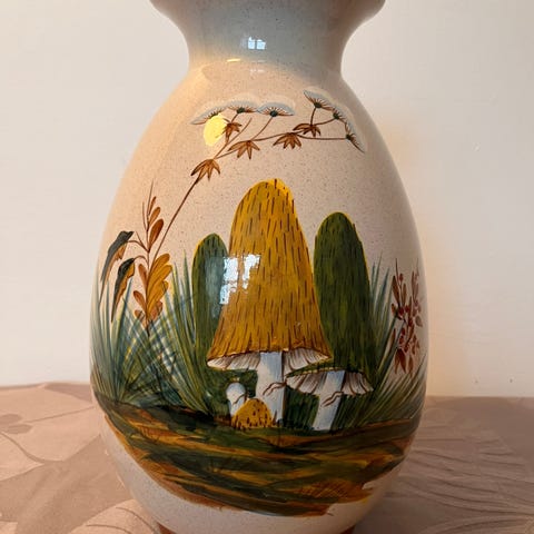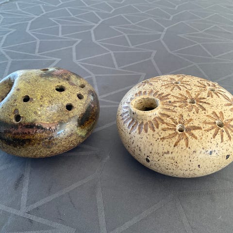 Et sæt på 5 stk. danske hulvaser, svampevaser eller blomstersten fra 70erne. Kært barn har mange navne. Jeg har desværre ikke plads til dem, og det er synd de bare er pakket i en kasse. Der er tre med signatur 'Würtz' (Aage Würtz), én med signatur 'Potteriet' (Langeland) og én uden navn/signatur. Alle fem er ca. 14-15 cm i diameter og naturligvis i fin stand. Samlet pris inkl. forsendelse.