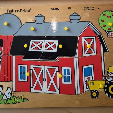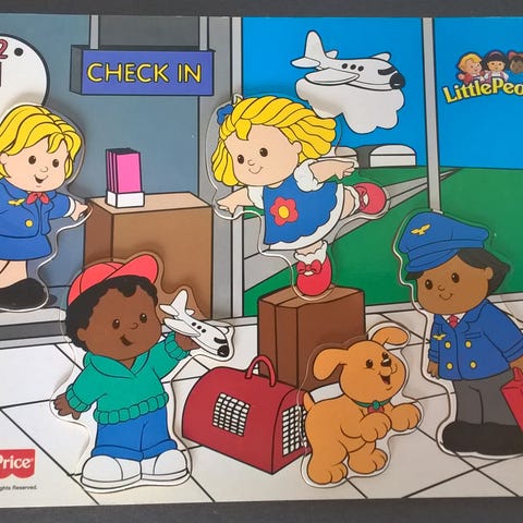 Fisher-Price Læringsspil og Puslespil til børn med forskellige temaer og figurer. Inkluderer puslespil og spil med farverige illustrationer, designet til at støtte børns læring og motoriske færdigheder.