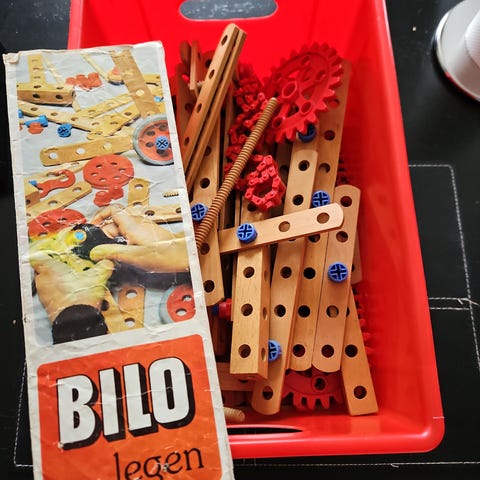 BRIO Legetøjsgård fra 80érne til børn, med grøn base, rød og brun tag. Fremstillet i træmateriale med plads til leg og opbevaring. Velegnet til børn til rolleleg og udvikling af fantasi.