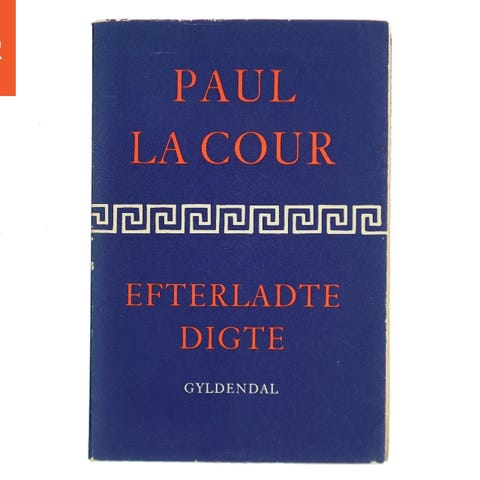 Poul La Cour. Mellem Bark og Ved Digtsamling. En samling digte med fokus på natur og livets elementer. Udgivet af Københavns Universitet, 1947. Bogens sider viser tegn på alder, men teksten er intakt.