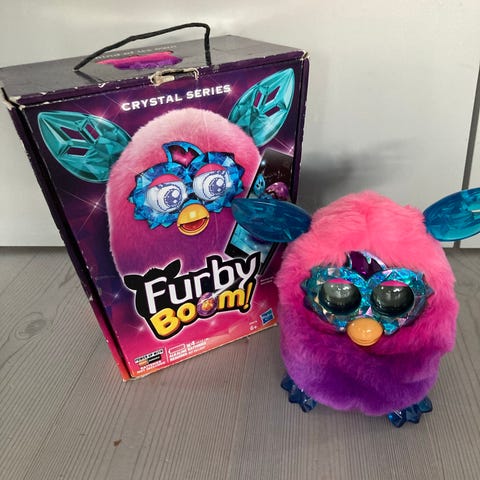 Furby Original Elektronisk Legetøj i blå farve med blødt plys og plastikdetaljer. Produktet har øjne, ører og hale, og er designet til interaktiv leg. Drevet af batterier (ikke inkluderet). Den er fra årgang 2012. Virker ikke mere selv med batterier i