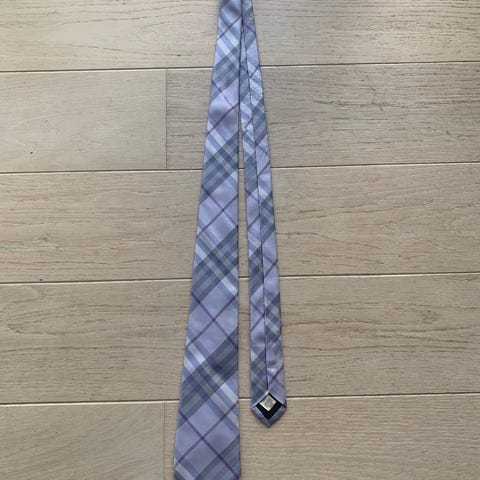 Burberry Klassisk Slips i traditionelt ternet mønster i farverne beige, sort, hvid og rød. Slipsen er designet til unisex brug og er fremstillet i materialer, der typisk anvendes til slips. Produktet inkluderer original emballage og mærker.