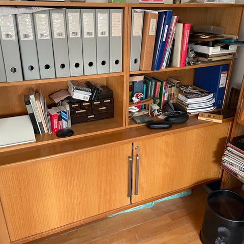 Kontormøbler med to skabeslåger og en hængemappe