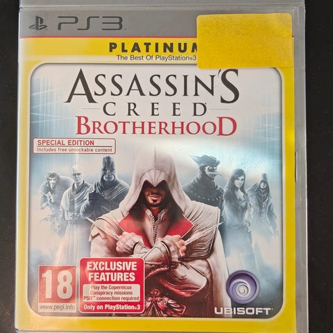 Ubisoft Assassin's Creed Brotherhood Playstation 3 spil. Spillet er egnet til Playstation 3 konsollen og indeholder action-eventyr gameplay. Aldersgrænse: 18+. Spillet leveres med original cover og disk.