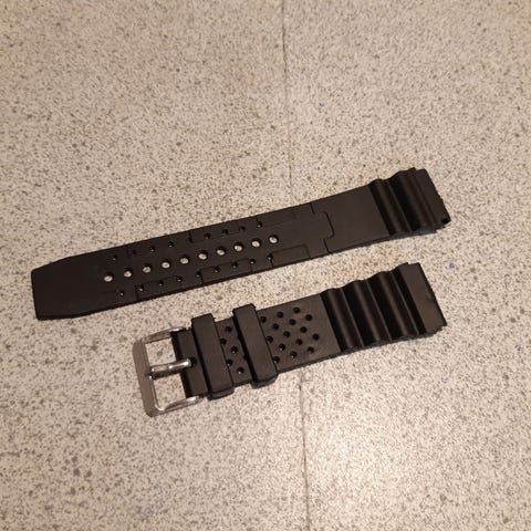 Helt ny og uåbnet. Fejlkøb, passer ikke i målene til mit ur. Som beskrevet på pakken er det 22 mm. Rosa farvet. Silicone. Mærke ukendt