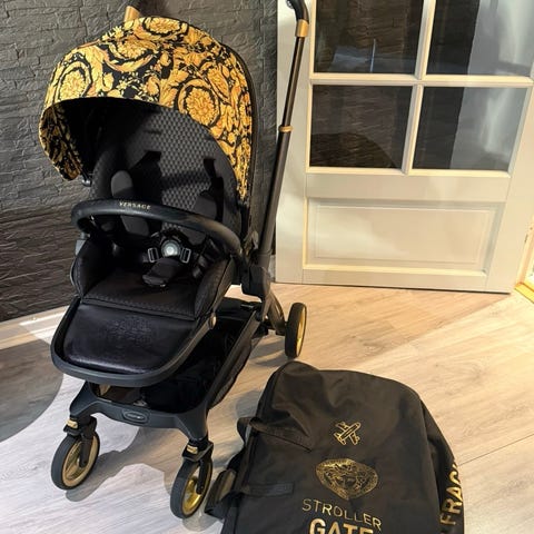 Super flot og stilfuld klapvogn, standen er næsten helt ny brugt få gange hen over sommeren. Der med følger original myggenet samt gate check taske til vognen. Ny pris 16.000 kr.