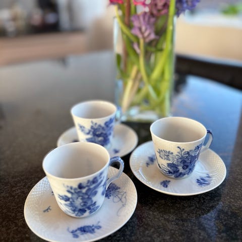 Royal Copenhagen Espressokop Blå Blomst Porcelæn Hvid Blå