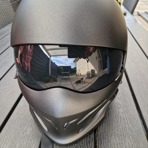 Astone Avertis motorcykelhjelm i matblå med røde og hvide detaljer. Hjelmen har en klar visir og indvendig polstring for komfort. Justerbar spænde og ventilationsegenskaber. Designet til at give beskyttelse ved motorcykelkørsel.