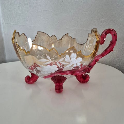 Glas skål, Glas, 60 år gl., Stor flot helt intakt glas bowle/ skål , anslået vægt 2-3 kg. Stammer fra min mor. Den er smukt skøn og unik, men den skal videre kr 1800