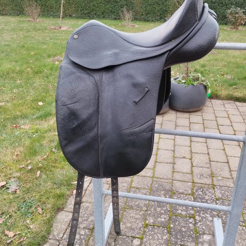 Super lækker 15" ponysadel fra Bates i læder. Man kan selv skifte kopfjern, og der sidder et hvidt i nu. Sadlen er med cair luft system. Meget velholdt og passet godt på, dog kan man godt se den er brugt.