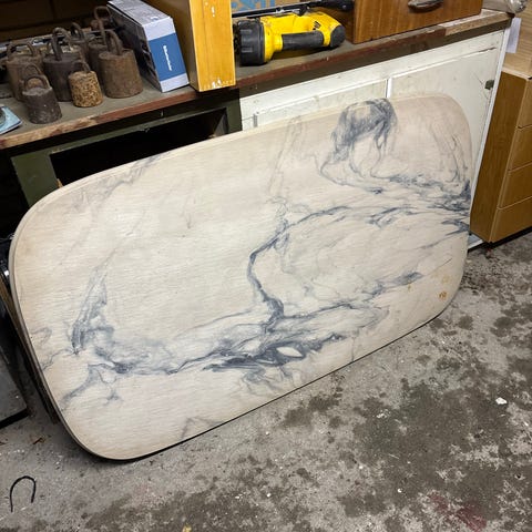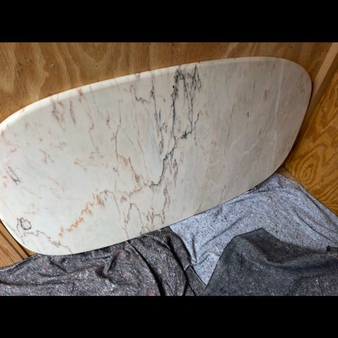 Virkelig flot bordplade, grøn marmor, har en lang ridse, ses ikke rigtigt.