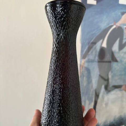 Måler 14,5cm i højden og 5,5x8,7cm i den ovale form.