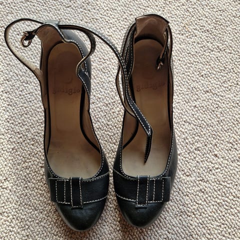 Sorte skind sko med ankelrem. Hælen er 3,5 cm. Runde snuder