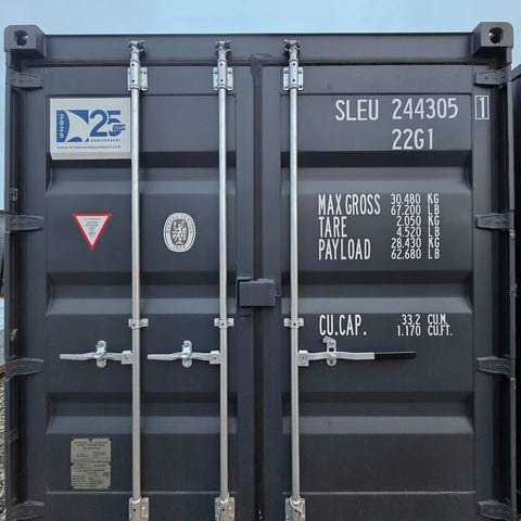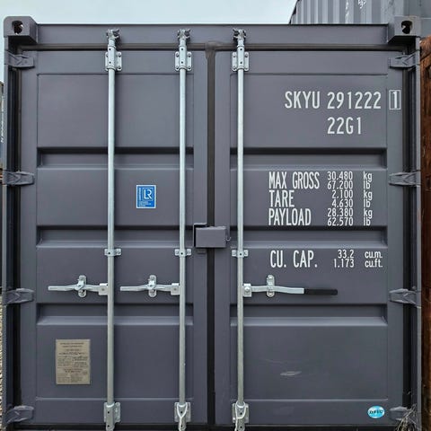 Nye 20 fods container i den attraktive RAL7016 med easy lock, lockbox.