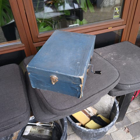 Er på et tidspunkt blevet malet med noget tykt stads... Godt for beskyttelse...men ikke videre kønt...