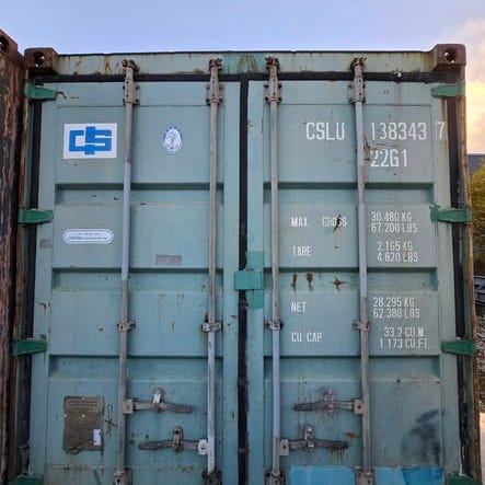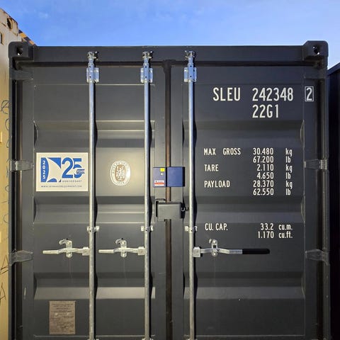 Nye 20 fods container i den attraktive RAL7016 med easy lock, lockbox og klasse 5 lås.
