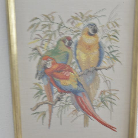 Motiv; To påfugle på gren. Indrammet med refleksfrit glas. ( 37 x 51) cm.