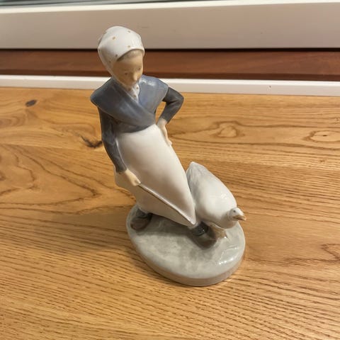 Royal Copenhagen Figur Kvinde med der plukker gås