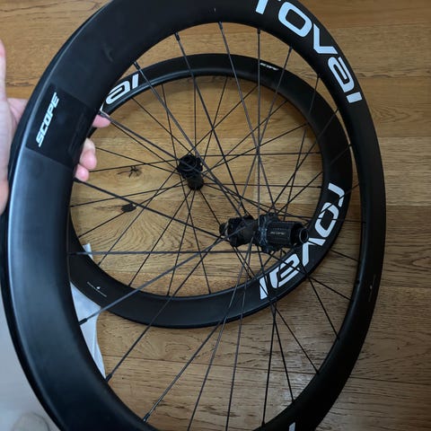 Super lette aluhjul (1515g). Kører helt fint og lige. Til shimano kassette. Der er en ridse som der er billede af. Købt hos davinci for 7100kr i 08/2021 - har regning. Kan sættes op tubeless og med slange. Har kørt med begge dele på 35mm dæk.